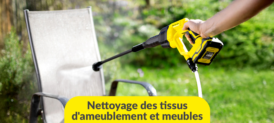 Débarrassez efficacement vos meubles de jardin et vos tissus d'ameublement de la saleté, des taches et des influences environnementales. Avec nos puissants aspirateurs eau et poussière et appareils de nettoyage, vous assurez une propreté hygiénique et prolongez la durée de vie de vos meubles de salon. Votre terrasse brillera d'un nouvel éclat.